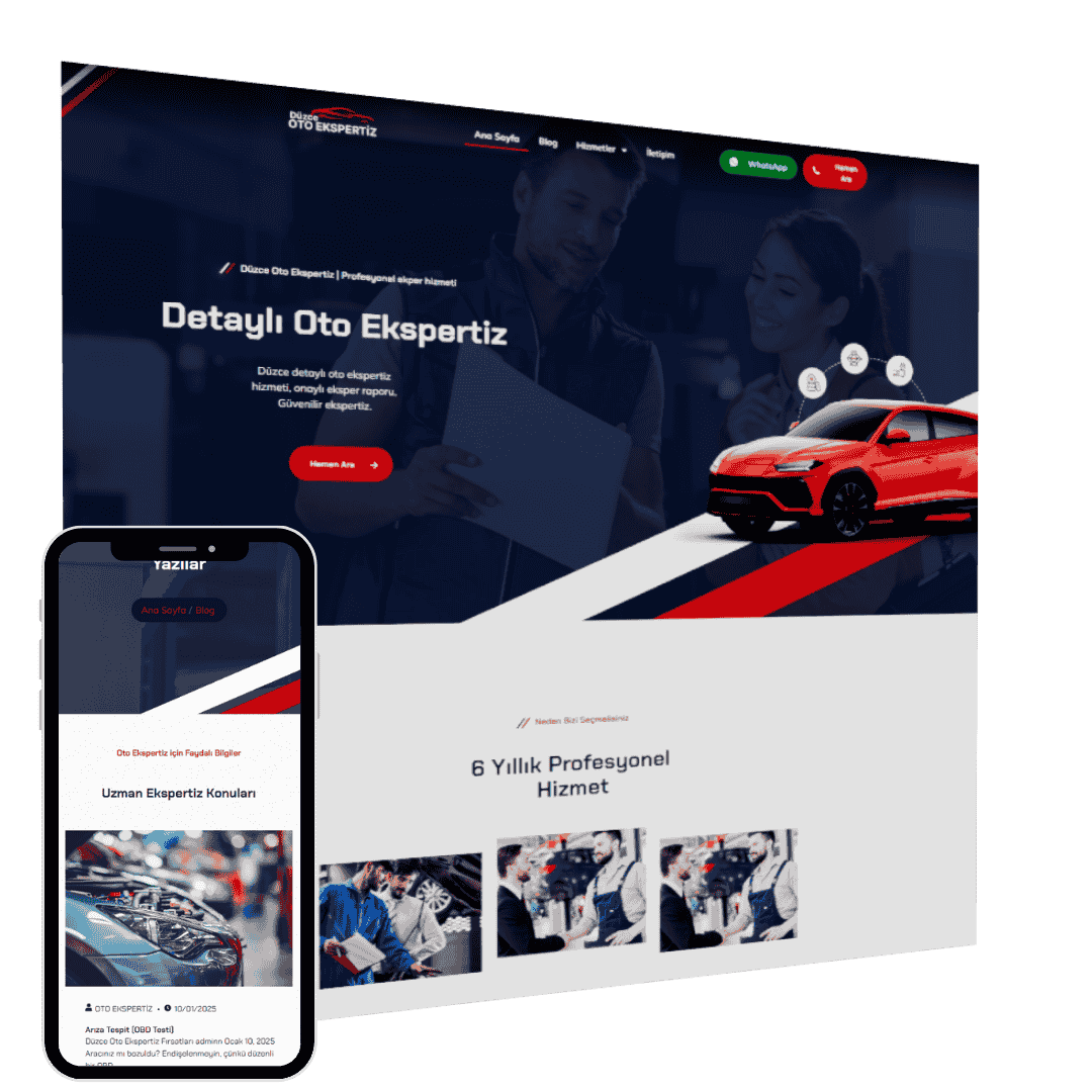 Düzce Oto Ekspertiz için hazırladığımız web sitesi, araç alım satım süreçlerinde güvenilir kontrol hizmetlerini ön plana çıkarıyor. Fren testi, motor kontrolü, boya–kaporta analizi ve detaylı raporlama gibi hizmetler, mobil uyumlu ve SEO odaklı yapısıyla müşterilere kolayca ulaşıyor.