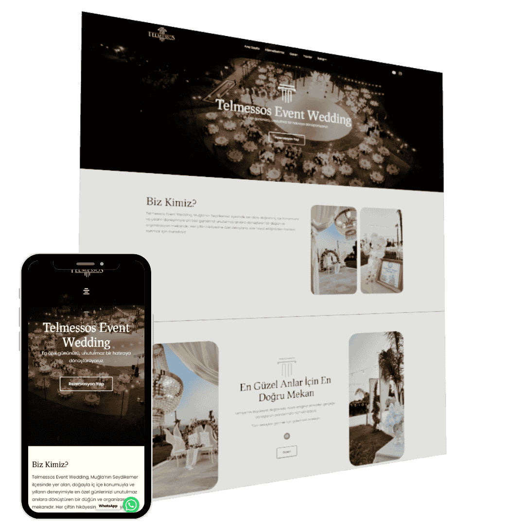 Telmessos Event için geliştirdiğimiz web sitesi, modern tasarımı ve kullanıcı dostu arayüzü ile düğün ve davet organizasyonlarını dijital dünyada en iyi şekilde temsil ediyor. SEO uyumlu yapısı sayesinde Telmessos Event, arama motorlarında daha fazla görünürlük elde ederek potansiyel çiftlere hızlıca ulaşabiliyor.